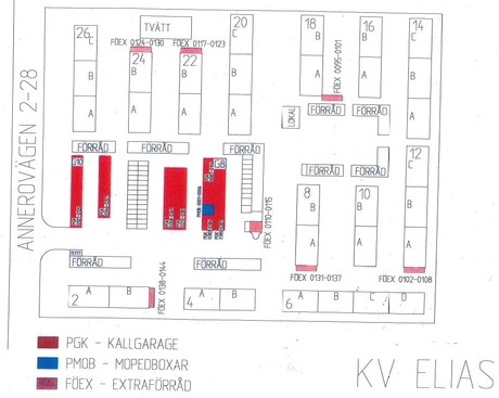 Ett förråd i länga hör till lägenheten. En parkeringsplats tillhör lägenheten idag.