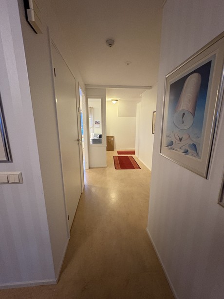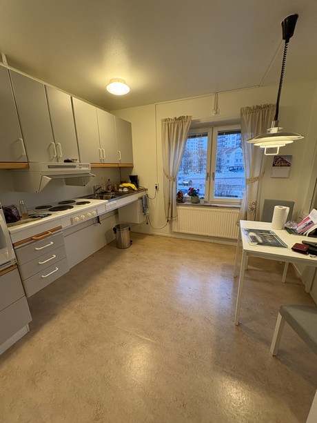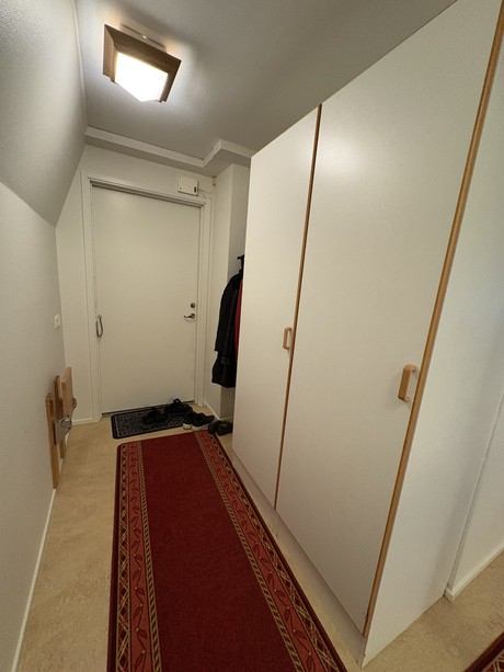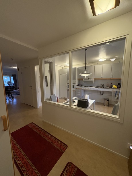 Ljus och stor hall med hatthylla. Luftigt och charmigt handikappanpassat kök med grå skåpsluckor. Badrummet är fräscht och lätt städat med kakel och plastmatta. Rummen är nymålade med vita väggar. Bara att flytta rakt in!