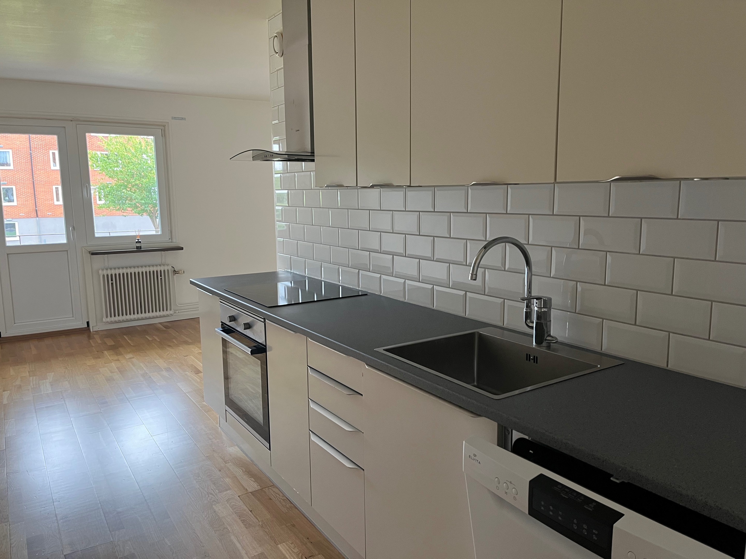 - Ljust och modernt renoverat kök med diskmaskin samt kyl och frys i fullhöjd.