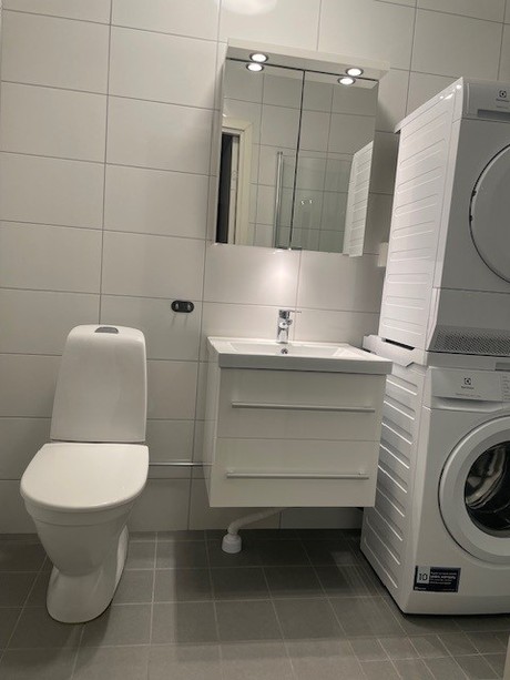 Lägenheten har ekparkett genomgående och badrummet är helkaklat med golvvärme, tvättmaskin, torktumlare och handukstork. Köket är rustat med diskmaskin och integrerad mikro. Ljusa tak och väggar.
