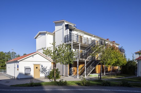 Fastigheten har hiss. Entrén till lägenheterna binds ihop av loftgångar. Fasaderna är klädda med stående träpanel. Alla lägenheter har egen tvättmaskin och torktumlare eller kombinerad tvättmaskin/torktumlare. Samtliga lägenheter har också egen balkong eller uteplats.