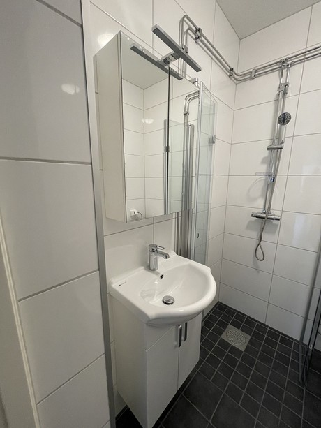 ✅ Nyrenoverat badrum med kakel och klinker, golvvärme, duschdörrar i glas och handdukstork