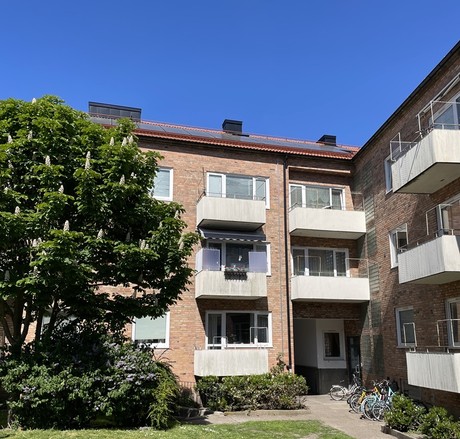 Lägenheten bjuder på genomtänkta materialval, bra planlösning och en härlig balkong mot den grönskande innergården.