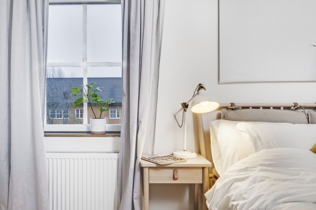 Vitmålade väggar och trälaminatgolv. Sovrummen är inredda med klädgarderober.