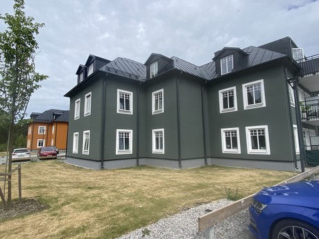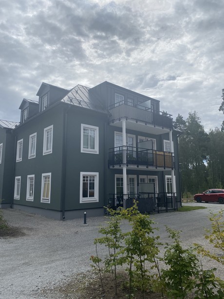Rostfria vitvaror från Cylinda och bänkskivan i laminat är snyggt grå. Badrummet är helkaklat med klinker från Bricmate och de större bostäderna är alla utrustade med tvättmaskin och torktumlare alt kombimaskin. I hallen ligger klinker från Bricmate för att underlätta då du kommer in med blöta skor. Här finns även fin förvaring i form av garderober samt ytterligare förråd/klädkammare.