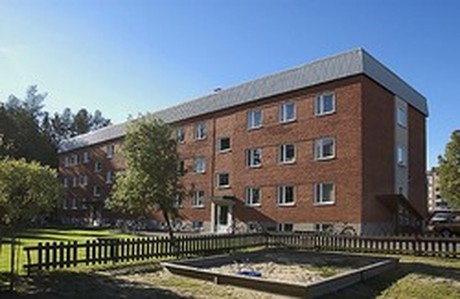 Tvättstuga och förråd finns i separat byggnad på gården.