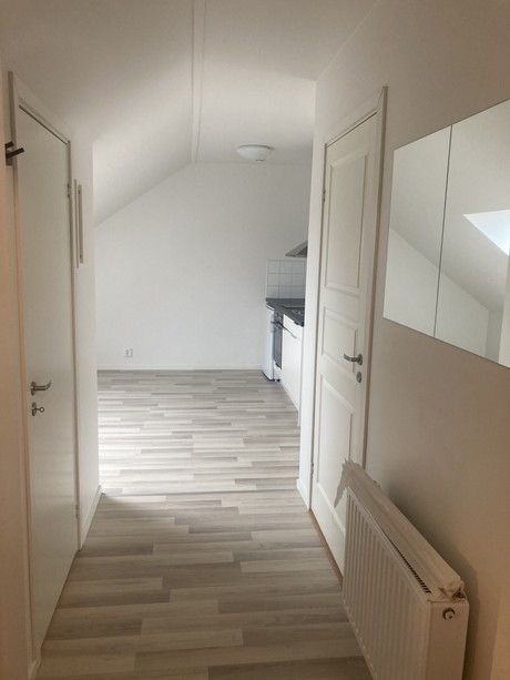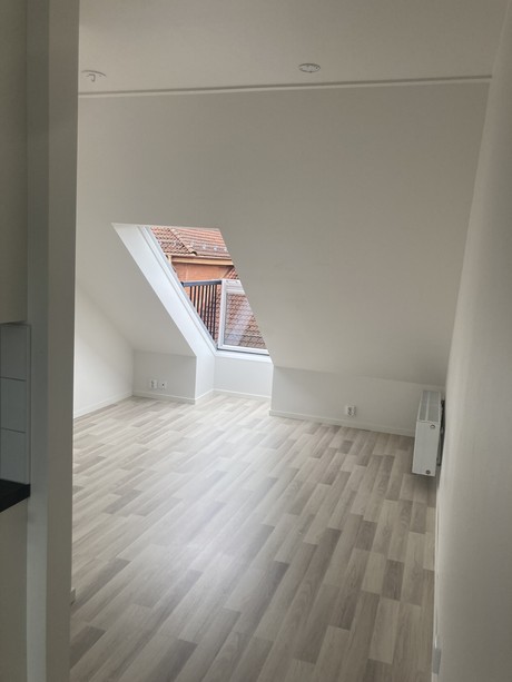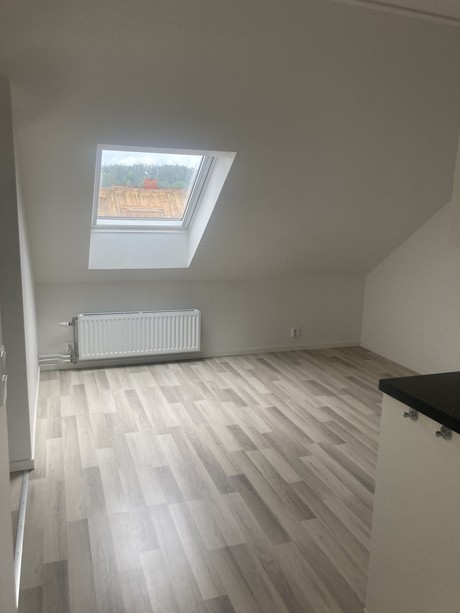 Nyproducerad lägenhet på vindsvåning om 1 rum och kök med fönsterbalkong. Lägenheten är belägen mitt i centrala Uddevalla på Kungsgatan 38 B.