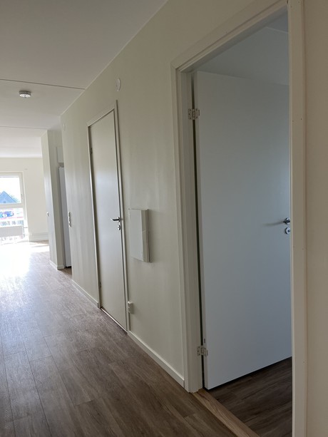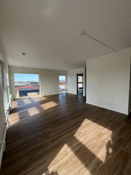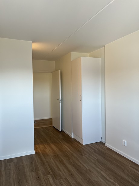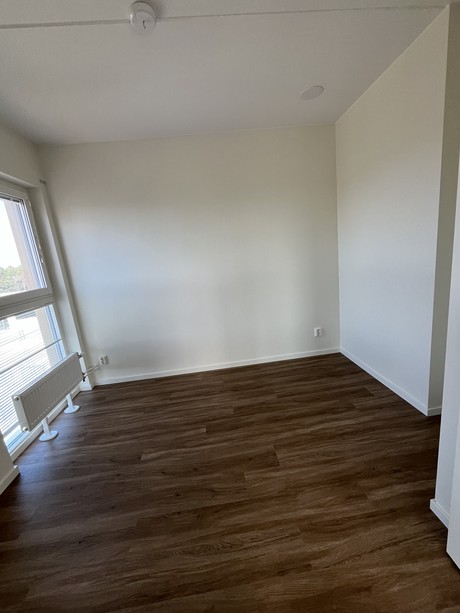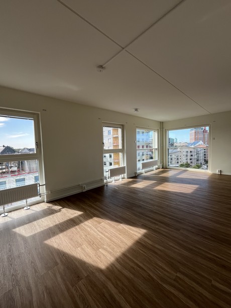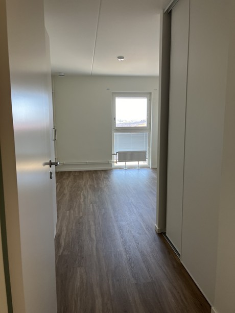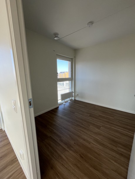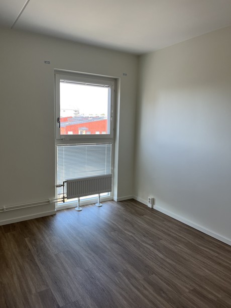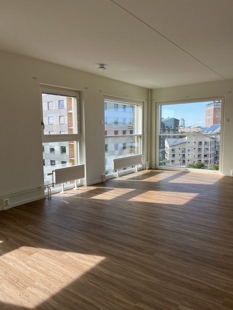 Lägenheten är utrustad med, diskmaskin och stora panoramafönster med vacker utsikt som är höj -och sänkbara med ett enkelt knapptryck. Lägenheten erbjuder generösa förvaringsutrymmen som garderober med skjutdörrar. Väggarna är vitmålade och golvet är i ekparkett för en exklusiv känsla och för att du ska kunna sätta din egen prägel i lägenheten.