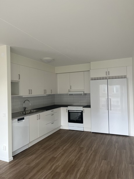 Lägenheten är utrustad med, diskmaskin och stora panoramafönster med vacker utsikt som är höj -och sänkbara med ett enkelt knapptryck. Lägenheten erbjuder generösa förvaringsutrymmen som garderober med skjutdörrar. Väggarna är vitmålade och golvet är i vinyl med ekmotiv för en exklusiv känsla och för att du ska kunna sätta din egen prägel i lägenheten.