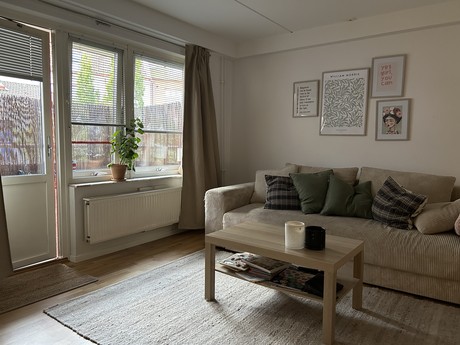 Du kan njuta av en trevlig balkong som vetter in mot gården – en perfekt plats för avkoppling eller en kopp kaffe. Badrummet är helkaklat och kommer här finns tvättmaskin för extra bekvämlighet.