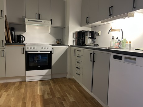 Här erbjuds en ljus och modern hyreslägenhet med stilrena detaljer och hög standard. Köket har vita skåpluckor samt kyl och frys i fullhöjd. Dessutom finns induktionspis med varmluftsugn samt en diskmaskin, perfekt för dig som älskar att laga mat.