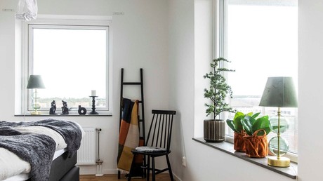 En modern fyra på populära Pollettgatan med flera meter balkong där halva balkongen är inglasad.