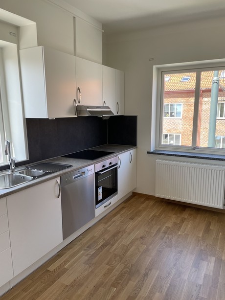 Välkommen till en modern och smakfullt renoverad 2 rok där varje detalj är genomtänkt. Lägenheten har vitmålade väggar och genomgående parkettgolv, vilket skapar en ljus och harmonisk atmosfär.