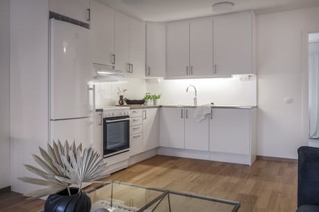 Lägenheten är ljus med vita väggar och genomgående ekparkett. Ett välplanerat kök med utrustning såsom kyl och frys, ugn, diskmaskin och plats för din matgrupp. Generöst med förvaring i dubbla klädkammare, garderob och städskåp! Lägenheten erbjuder ett helkaklat badrum med både tvättmaskin och torktumlare samt dusch. Vardagsrummet är välplanerat och har plats för din soffa och tv-bänk. Här ifrån når du även balkongen som ligger in mot det trevliga innergården. I hyran ingår värme och kallvatten. Varmvatten debiteras med IMD (individuell mätning), vilket betyder att du endast betalar för vad du själv förbrukar.