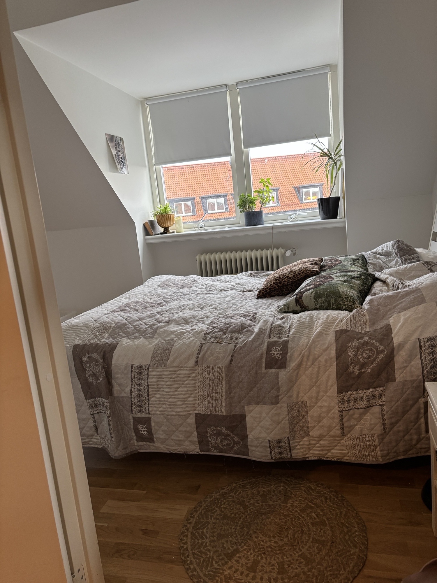 Sovrummet har en charmig planlösning med snedvägg samt fyra större fönster och för att inte glömma fyra garderober.