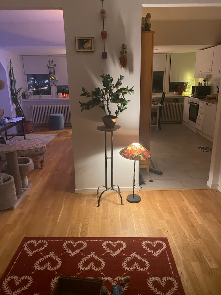 Parkering är lätt att hitta, finns utanför porten.