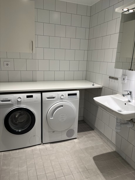 När du kliver in i lägenheten möts du av ljusa väggar och parkettgolv. Direkt in finner du ett helkaklat badrum med en duschhörna, och bekvämligheter som tvättmaskin och torktumlare. Du har även 1 extra wc.