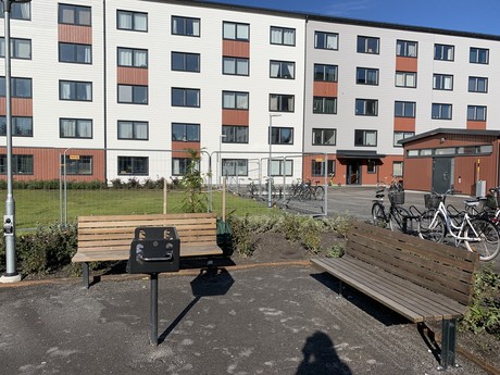 En mindre gemensam tvättstuga finns tillgänglig på bottenplan och fin utemiljö med grillplats och även cykelförråd.