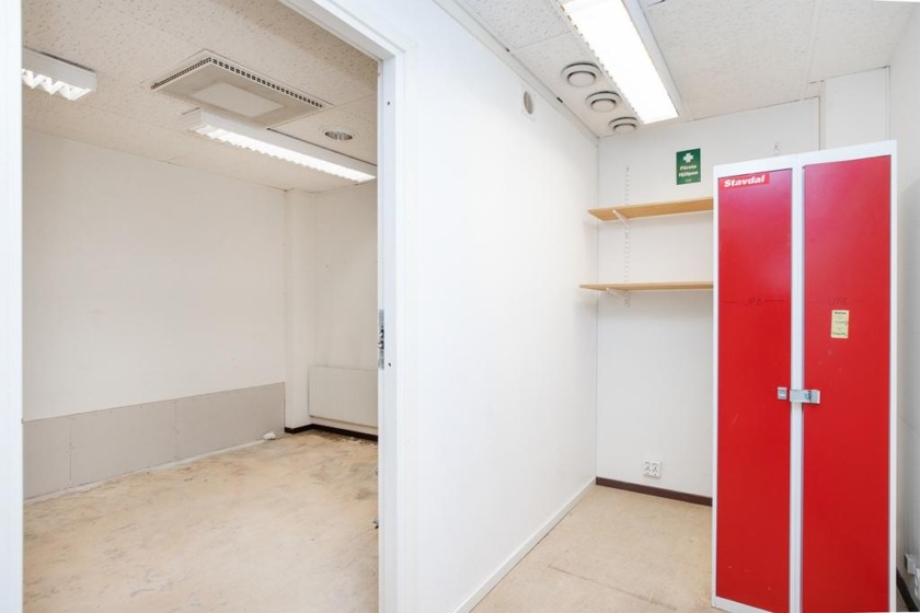 Lokalen, som finns i markplan är om totalt 214 m² och omfattar ett stort och öppet kontorslandskap, kontorsrum, köksutrymme med plats för ett stort matbord, två omklädningsrum och flertalet toaletter.
