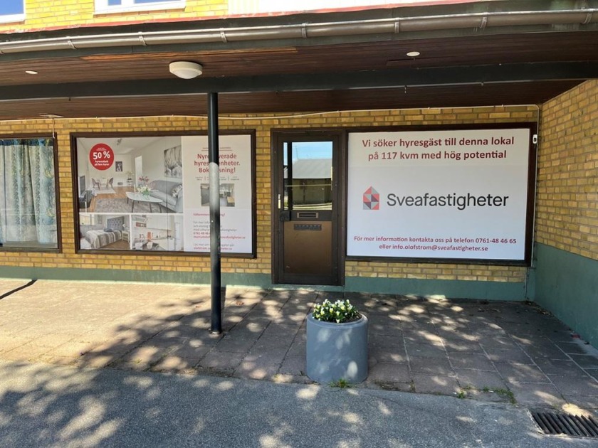 Här finns en lokal som har god potential efter renovering och anpassning till ny verksamhet (se exempelbild). Stora skyltfönster vid entrén skapar bra möjligheter till exponering och ljusinsläppet är genomgående trevligt även längre in i lokalen. Här har tidigare varit ett bageri men lokalen lämpar sig väl för exempelvis livsmedelsbutik, ett konditori, kontor eller annan trevlig verksamhet. Här finns alla möjligheter att i dialog med fastighetsägaren vara med och påverka utformningen för rätt verksamhet. Möjlighet finns också att öppna upp mot intilliggande lokal/er för den som söker ännu större ytor. Hyran sätts i samband med en eventuell hyresgästanpassning.