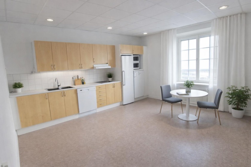 Läget mitt i Ludvikas centrum innebär närhet till restauranger, butiker och annan service. Kollektivtrafik finns inom kort gångavstånd, och det finns möjlighet till närliggande parkering för både personal och besökare.